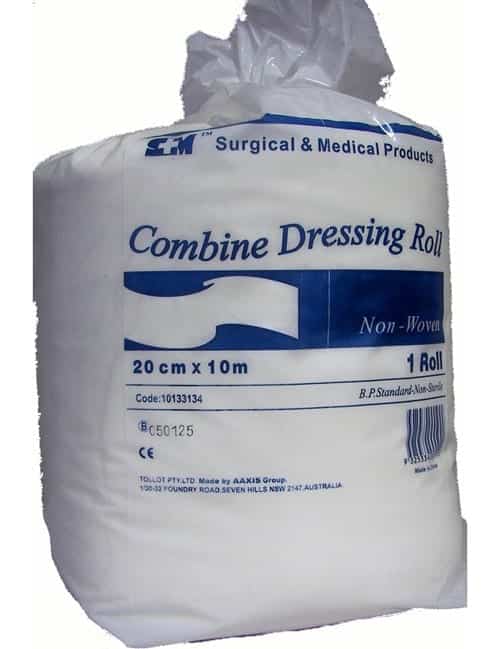 Combines are wound dressings consisting of a highly absorbent thick layer of fleece enclosed in a soft and conformable non-woven fabric, folded over to form a flat tube.