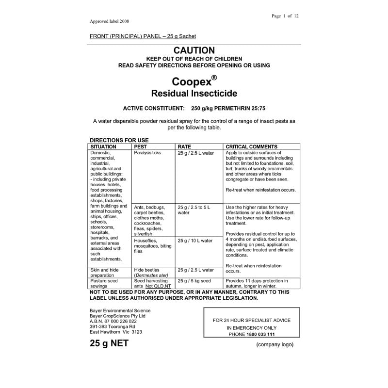- Active ingredient : permethrin 25:75 250g/kg