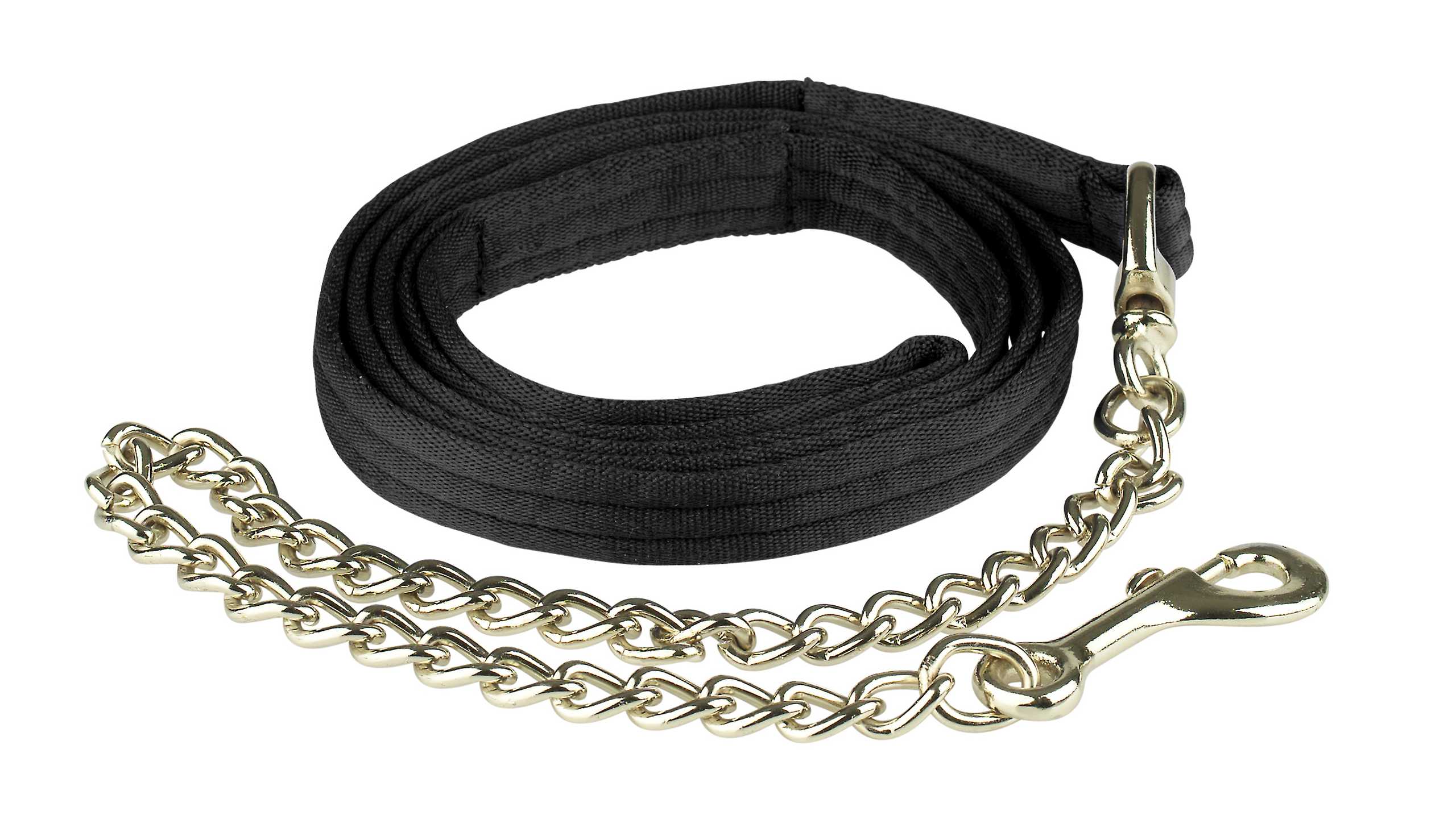 Soft lead shank of cushion webbing. With a brass plated single chain and a hand loop.