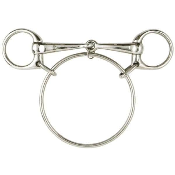 The large ring encircles the lower jaw to give the rider more control. This model features large links to the jaw ring, which allow the ring to slide more easily. It also includes a centre ring for a more direct action.