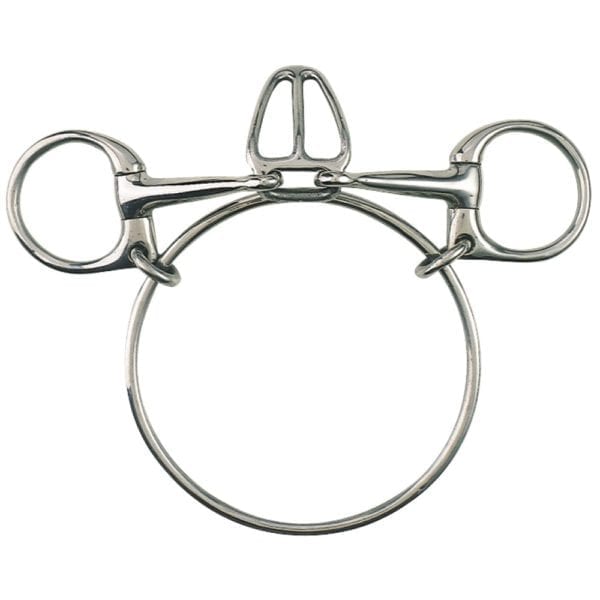 The large ring encircles the lower jaw to give the rider more control. This improved model includes a centre ring for a more direct action.