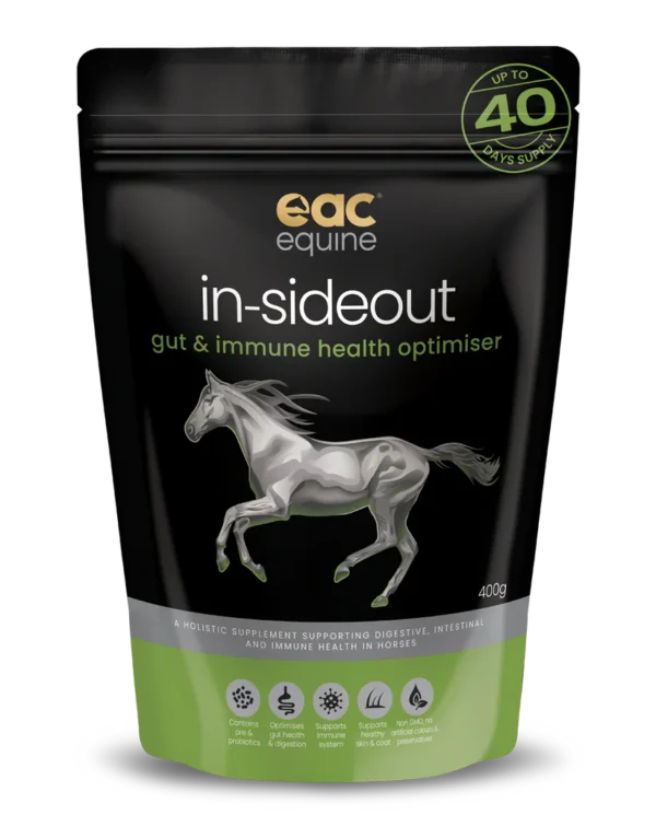 in-sideout contains a nutraceutical blend of natural holistic ingredients including pre & probiotics to support & optimise the immune & intestinal health of your equine partner.