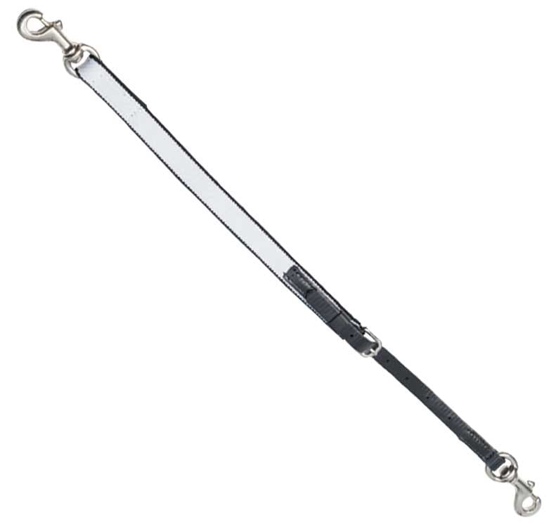 Similar in design to a regular Standing Martingale, this model includes a length of heavy elastic to allow some “give”, while still maintaining downward pressure if the horse raises his head too high. This design is intended specifically for use with Buxton Breastplates. It clips to the centre ring of the breastplate at one end, and to the centre ring of the head halter at the other end.