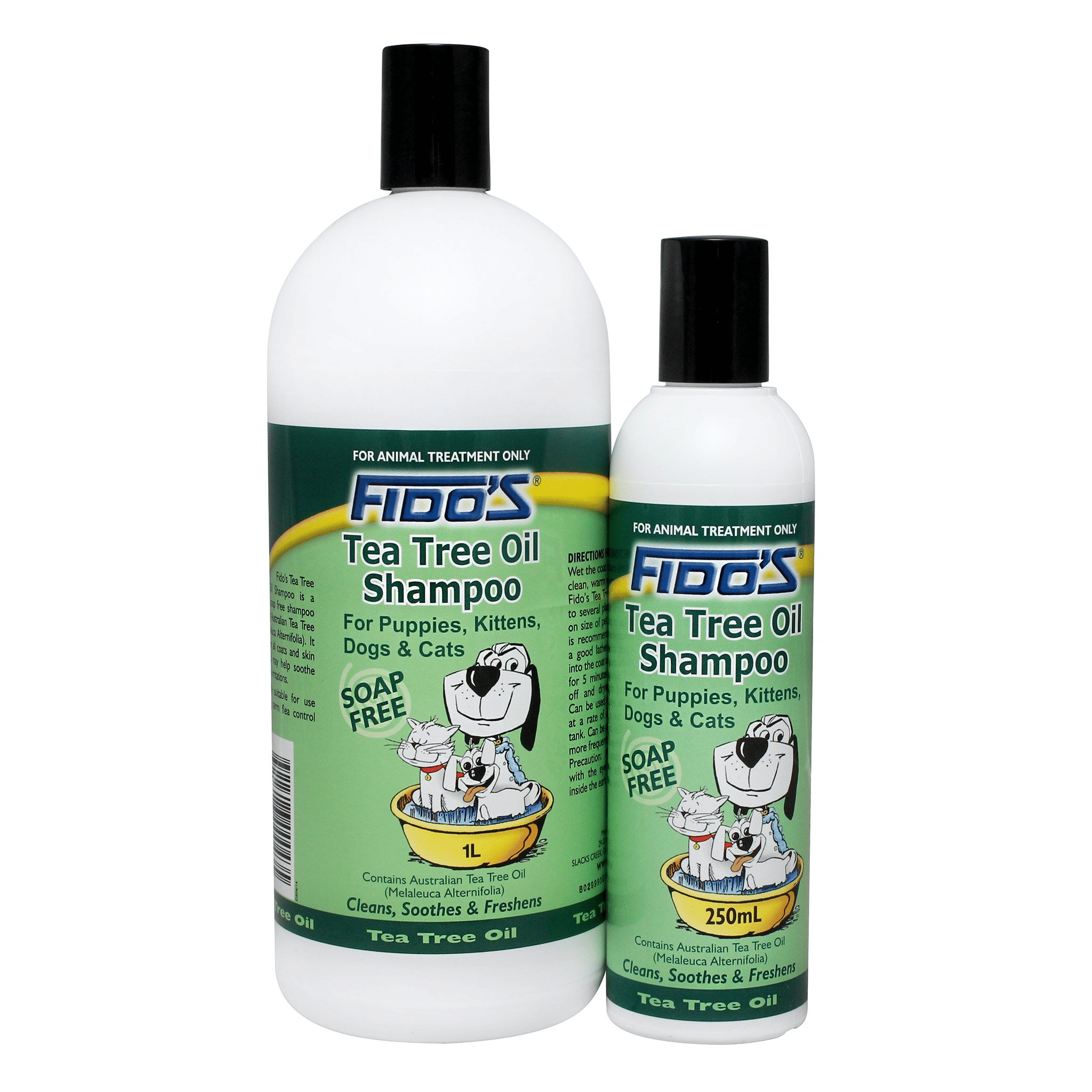 Wet the coat thoroughly with clean, warm water and apply Fido’s Tea Tree Oil Shampoo to several places. Depending on size of pet approximately 20ml is recommended. Work into a good lather, massage well into the coat and ideally leave for 5 minutes before rinsing off and drying thoroughly.