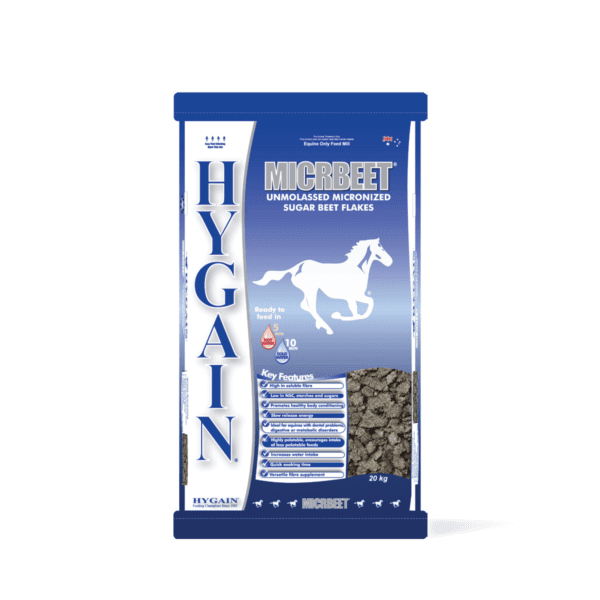 HYGAIN MICRBEET has the outstanding feature of providing digestible energy ranging between good quality hay and grains in the form of soluble fibre as opposed to sourcing energy from starches and sugars.