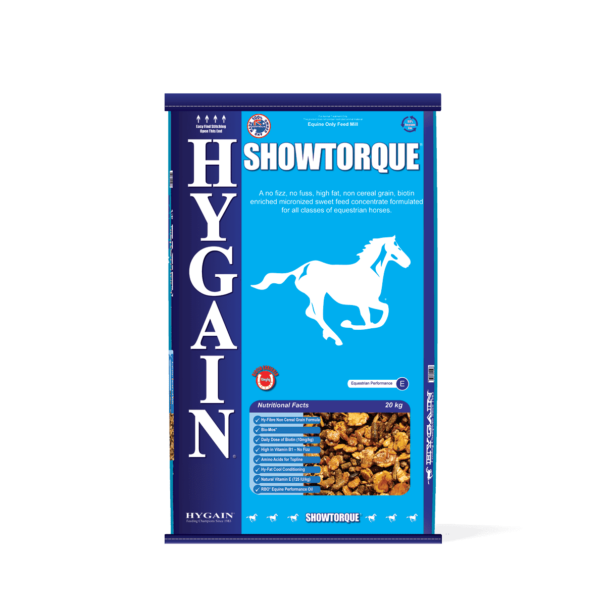 Topline building at its best, HYGAIN SHOWTORQUE provides sensible energy through slow release sources combined with essential amino acids and bio-available antioxidants for muscle tissue repair and to help manage the stresses of training and competition.