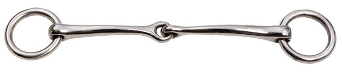 Stainless steel. Sometimes referred to as a “Mini” bit. A very fine jointed mouthpiece.