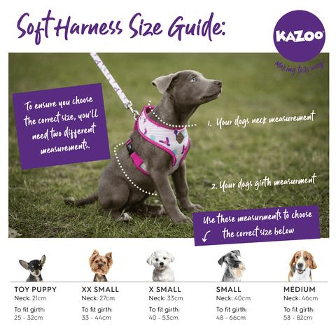 kazoo Soft Harness is breathable air mesh and a padded chest section, these soft walking harnesses are super sporty and comfortable for your dog. The adjustable chest strap allows for a secure fit, and easy control whilst walking.