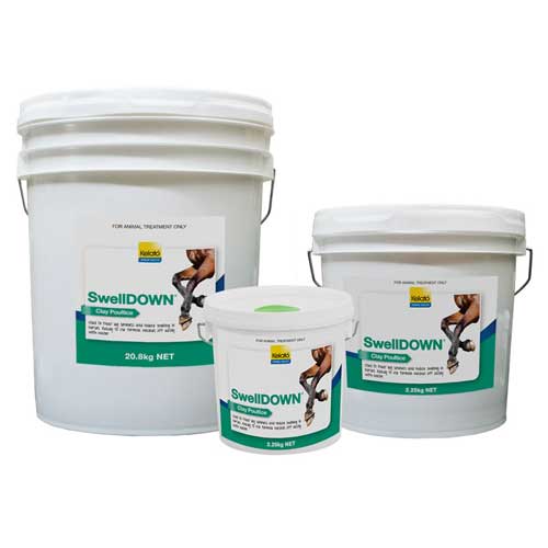 SwellDOWN’s special mixture of montmorillonite clay and unique therapeutic ingredients has a cooling effect on injuries often caused by hard knocks or jarring. The clay, used as a poultice, draws out heat and reduces swelling commonly generated at damaged sites to aid a more rapid recovery. It is fast, effective and an excellent tightener around knees, ankles and tendons.