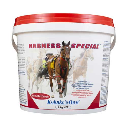 Harness Special™ provides extra Iron, B12, Folic Acid and Vitamin E (2,100IU/60g dose) to meet the elevated needs of harness horses fed on grain, chaff and hay based diets.