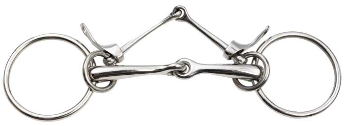 Stainless Steel. Also known as the “Citation” bit. Features a double mouthpiece that is very effective on hard pullers.