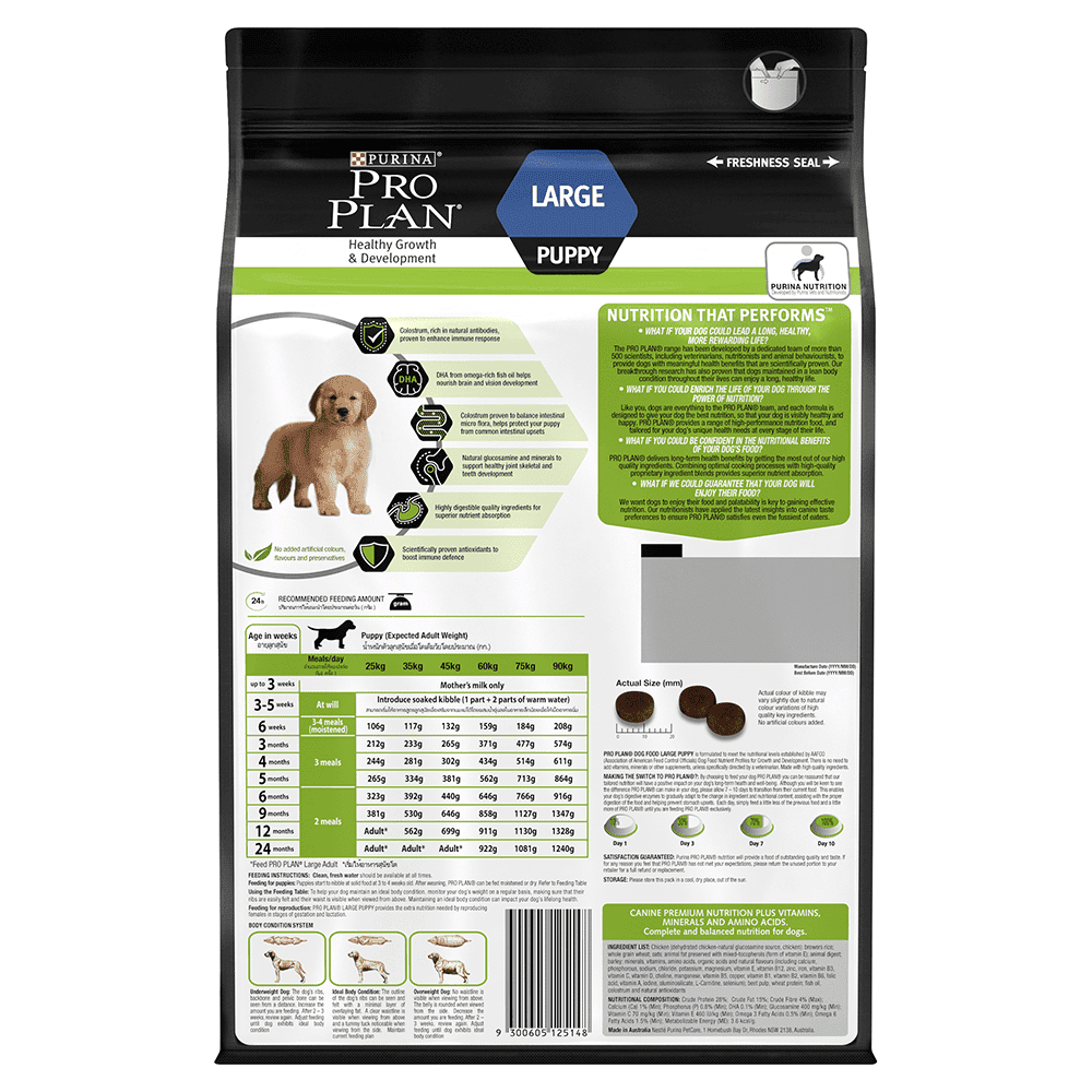 PRO PLAN® Healthy Growth and Development Large Puppy is a complete and balanced dry puppy food for large breed puppies. Your large breed puppy is full of fun and energy, and has their own nutritional needs so give them a food that is specially formulated just for them.
