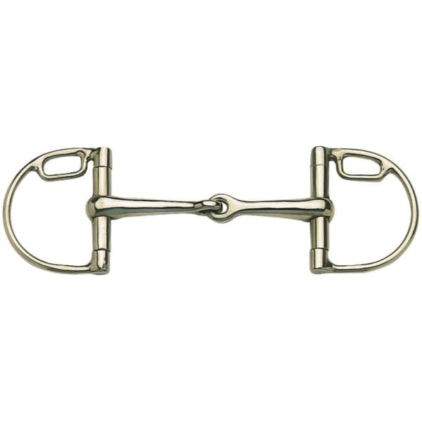The inside loops attach to the bridle cheeks, holding the bit in place in the horse’s mouth.