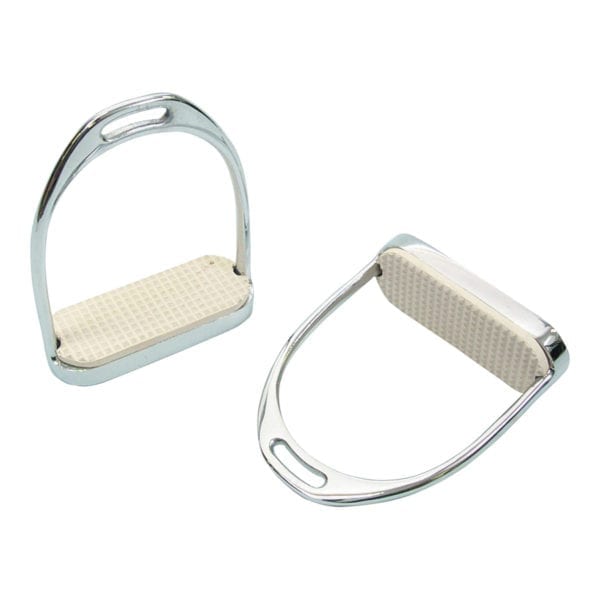 Strong stainless steel irons with knife edge bottom and white rubber treads.