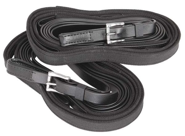 Zilco harness racing reins. This model has Zilco strapping at the billet end and Supergrip hand parts. They also feature 4 sewn (fixed) hand loops. The buckle ends include a wire stay for added strength and security.