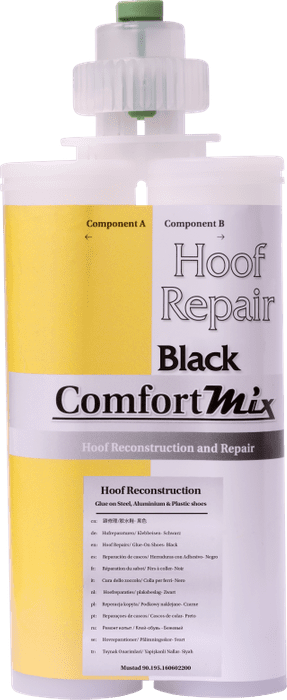 – Adhesive designed for large and small hoof wall repairs and to bond any kind of shoe to the hoof